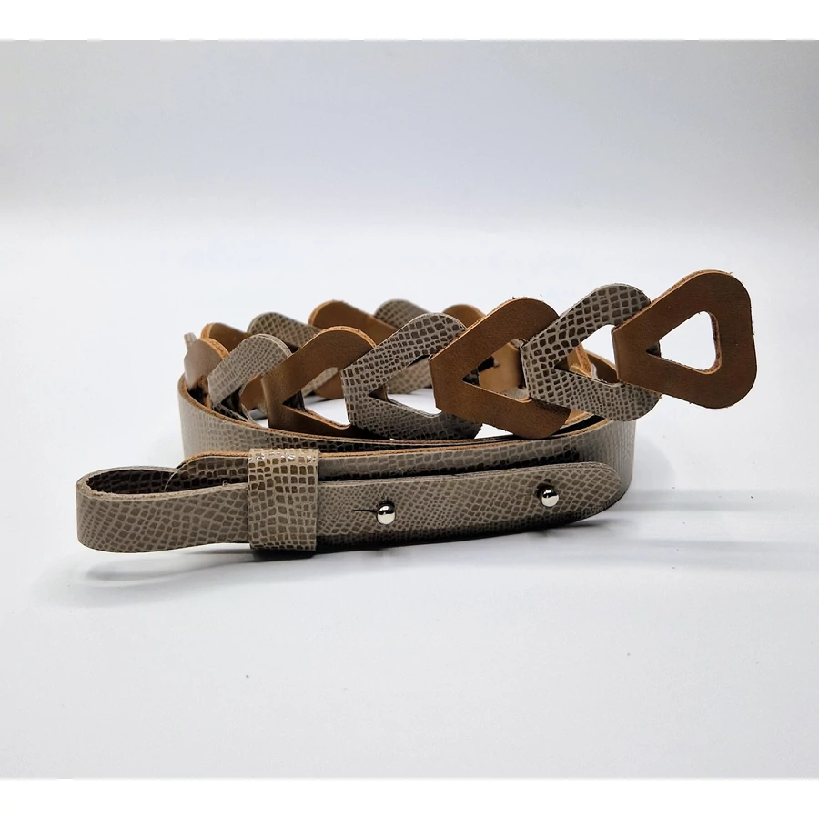 Letisztult design, tartós kivitel és kényelmes viselet – egy öv, ami hosszú éveken át elkísér. Hétköznapi és alkalmi viselet is lehet, egy egyszerű ruhadarobot is tökéletesen fel lehet dobni vele. Az egyedi tervezésnek, kialakításnak köszönhetően igény szerint állítható. Akár szettben is megvásárolható, hozzá illő karkötővel, fülbevalóval és táskával.