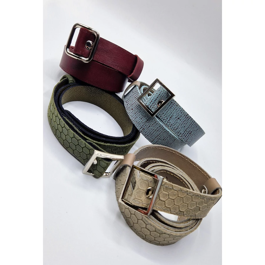 Letisztult design, tartós kivitel és kényelmes viselet – egy öv, ami hosszú éveken át elkísér. Hétköznapi és alkalmi viselet is lehet, egy egyszerű ruhadarobot is tökéletesen fel lehet dobni vele. Az egyedi tervezésnek, kialakításnak köszönhetően igény szerint állítható. Akár szettben is megvásárolható, hozzá illő karkötővel, fülbevalóval és táskával.